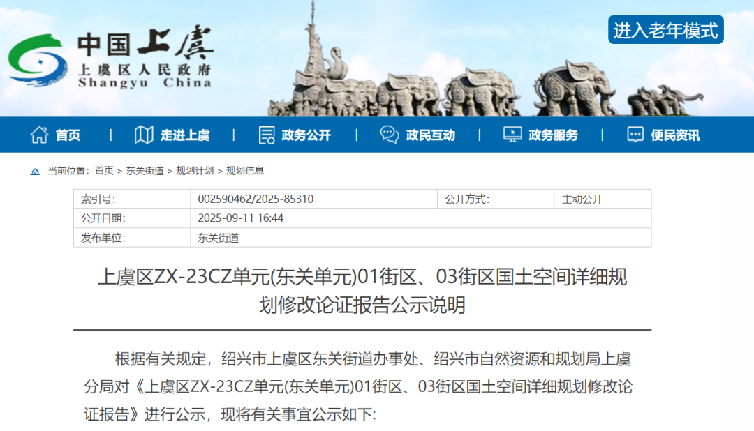近日,官方发布了关于上虞区ZX-23CZ单元(东关单元)01街区、03街区国土空间详细规划修改论证报告公示说明,一起来看下:
