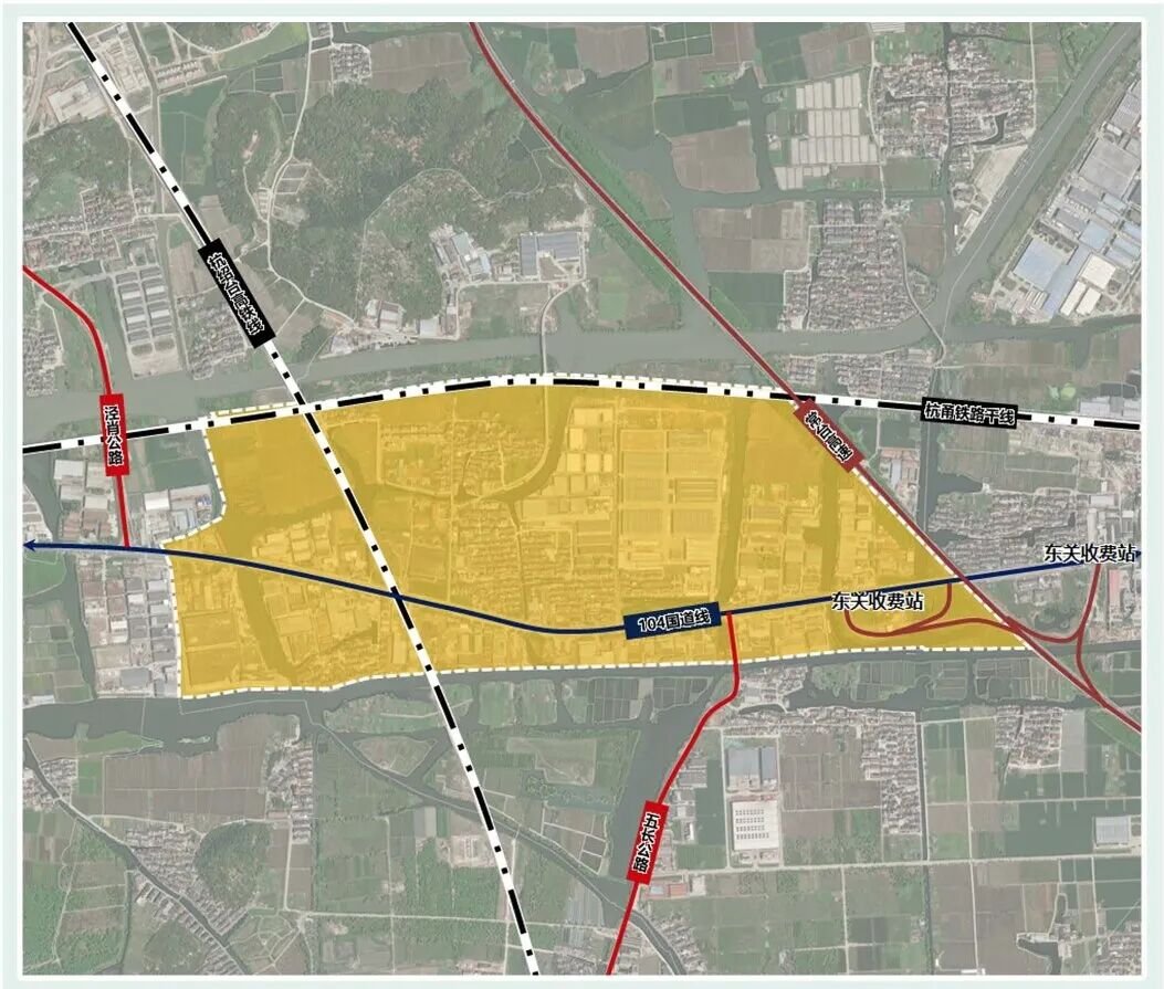 研究范围东至常台高速,南至萧曹运河,西至行政边界,北至杭甬货运干线。